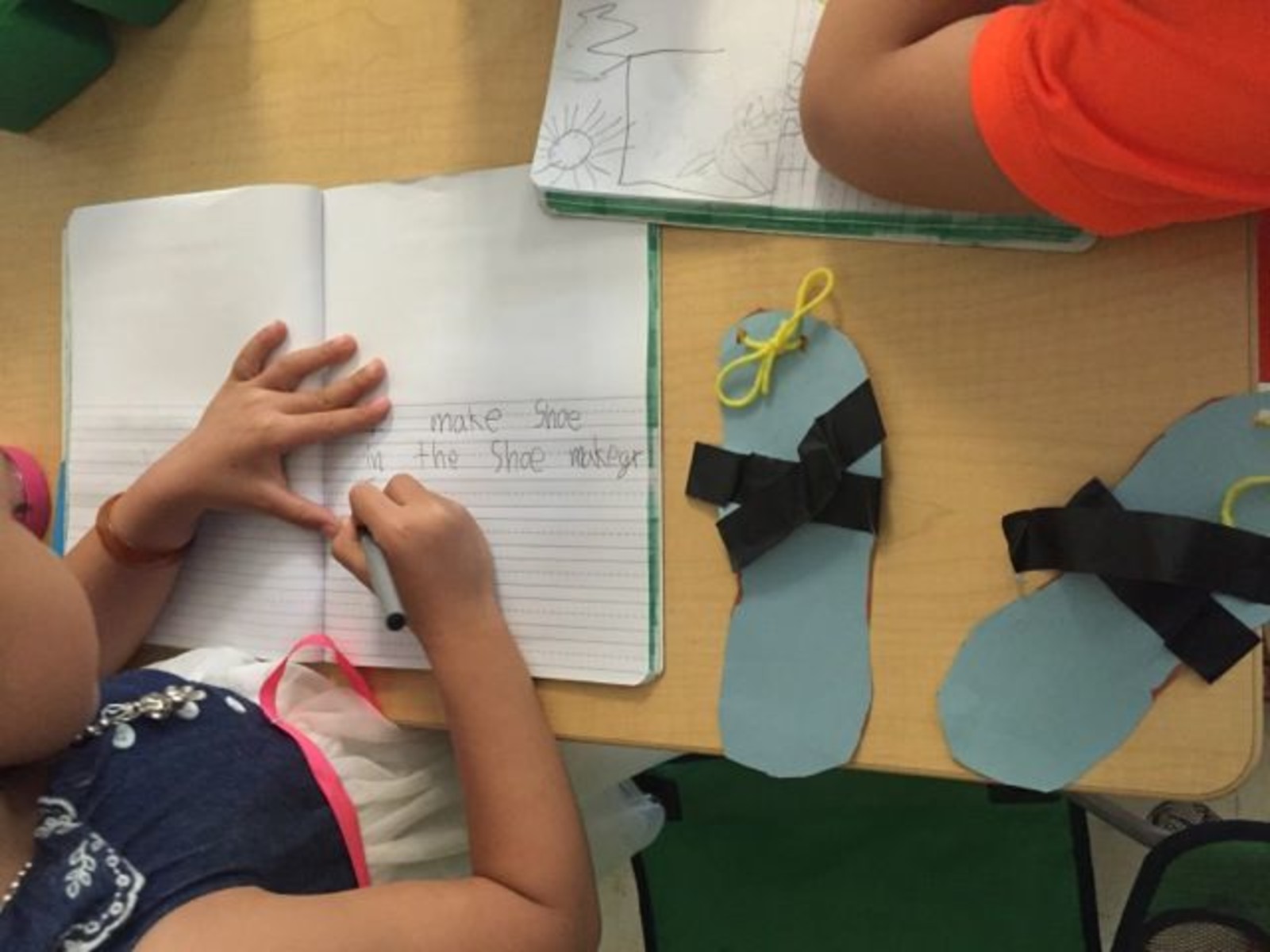 One day last school year, a girl in Fanny Roman's kindergarten class at PS 244 in Flushing, Queens arrived bubbling with excitement about her new shoes. With Roman's encouragement, she began tracing classmates' feet on paper and constructing "shoes," using pipe cleaners for laces. Her enthusiasm proved contagious; in response, Roman read poetry and picture books about shoes and students set up a play shoe store of their own, with different-size shoes in boxes, labeled "Jellies" or "Sneakers," as they categorized by size and even priced their wares. In their writing, they started using words such as "Velcro," buckles" and "shoelaces."