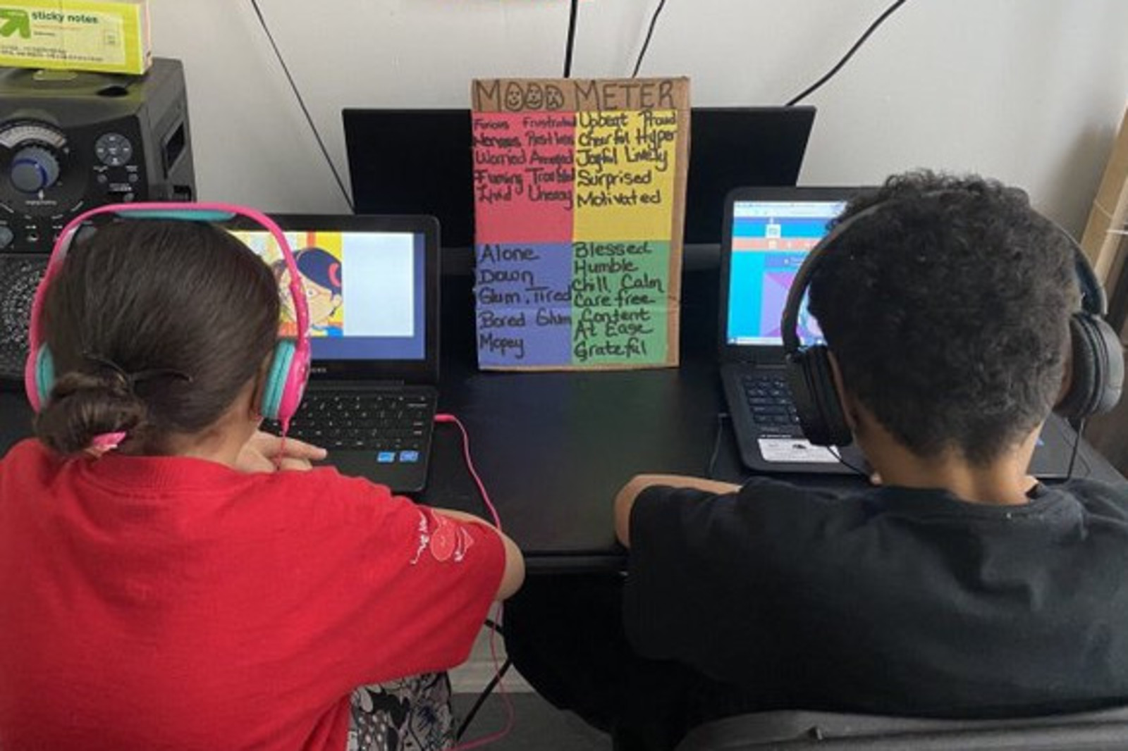 Photo of children working at home courtesy of the Thurgood Marshall Academy.