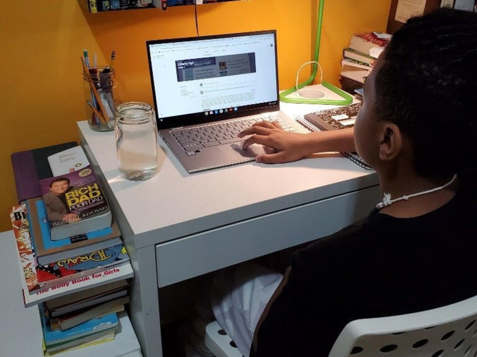 Photo of children working at home courtesy of the Thurgood Marshall Academy.